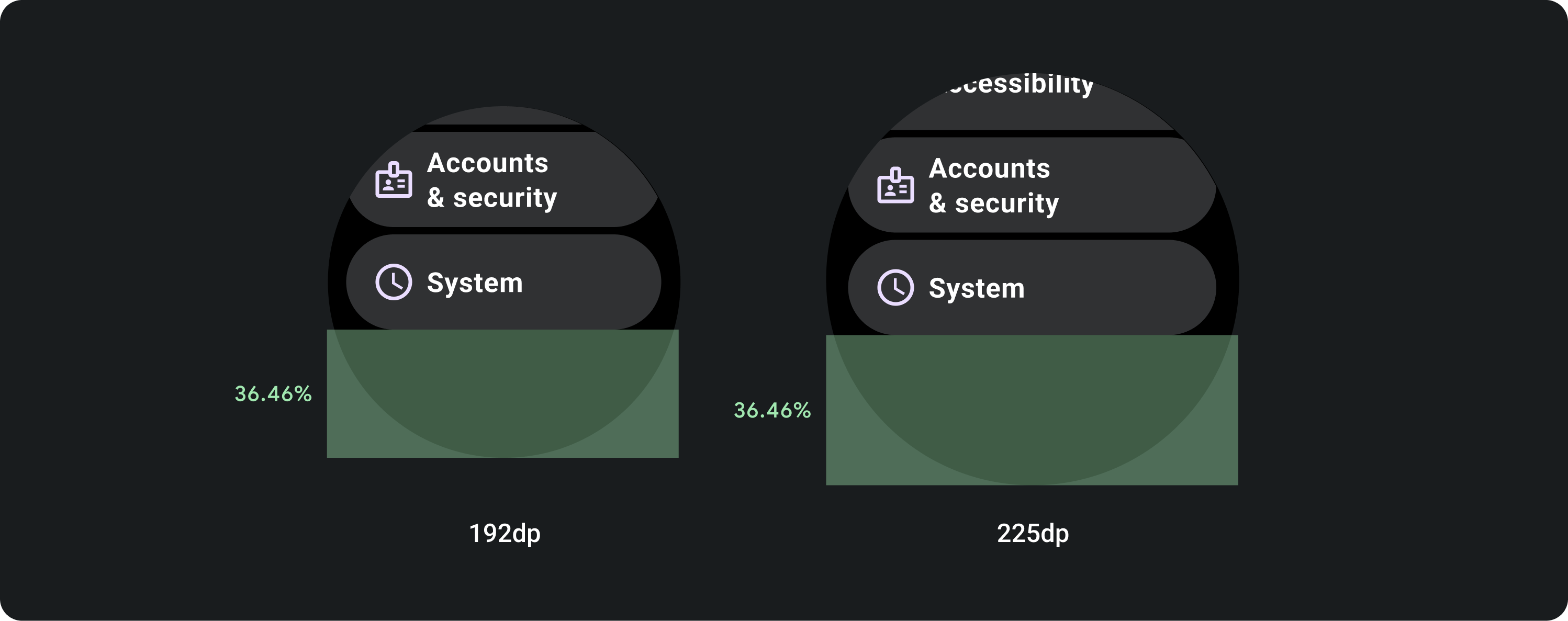 ScalingLazyColumn — это модификация LazyColumn , созданная специально для Wear OS. Списки обеспечивают масштабирование и прозрачность, что позволяет содержимому уменьшаться и исчезать в верхней и нижней части экрана, чтобы помочь пользователям увидеть, на чем сосредоточиться. Списки закрепляются в центре экрана, что придает дополнительный акцент элементам в середине списка.