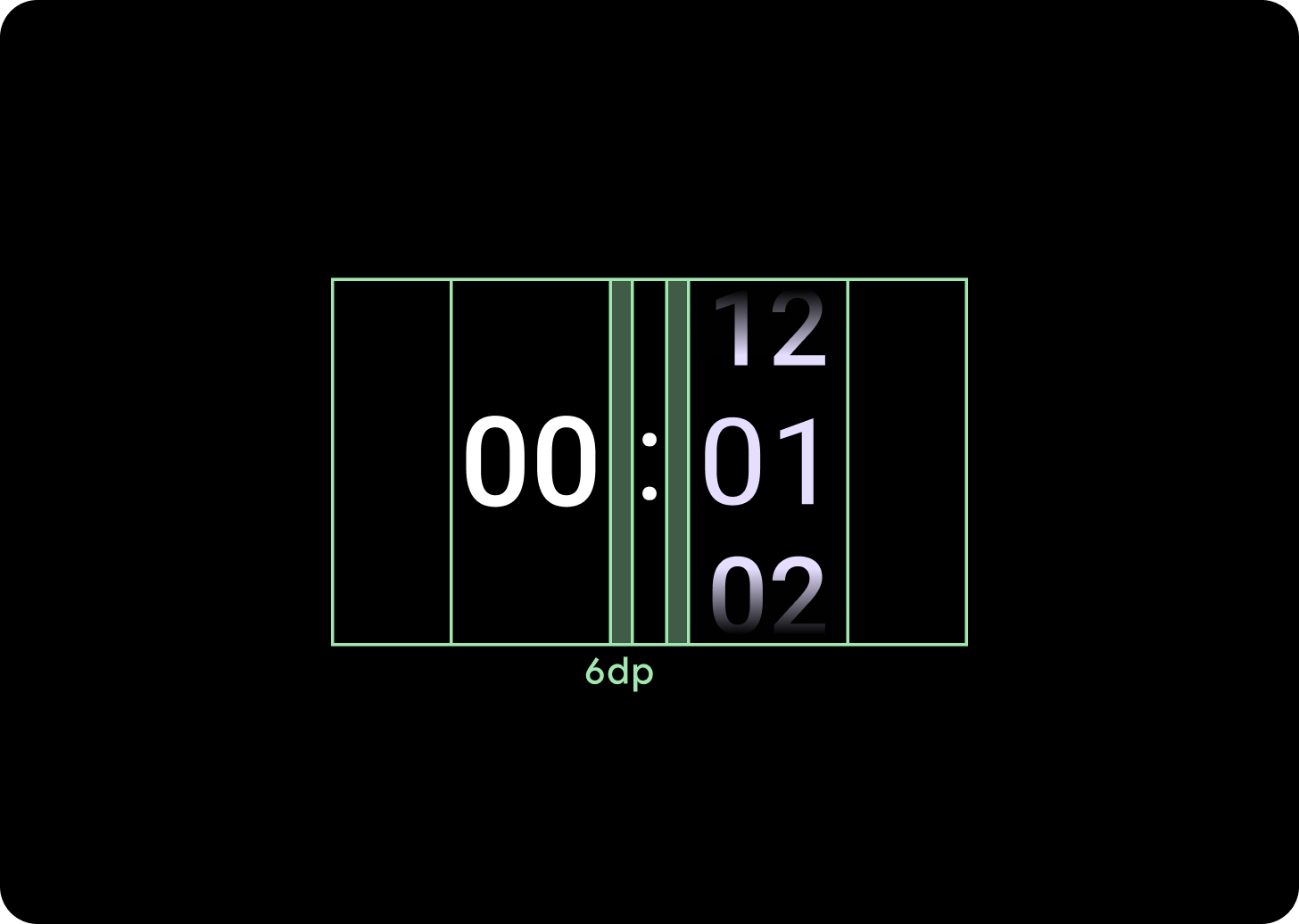 列の間隔は、225 以上のブレークポイントを超えると、2 dp または 4 dp から始まり、6 dp まで拡大します。2 列または 3 列のレイアウトのどちらを選択したかによって異なります。