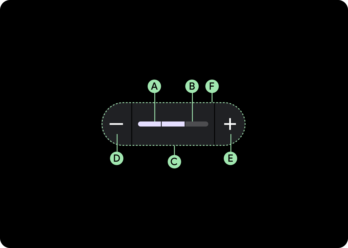 Değer aralığı üç ila dokuz arasındaysa segmentlere ayrılmış kaydırma çubuğu kullanabilirsiniz. Aralık sekizden büyükse segmentler görülemeyecek kadar küçük olur.
