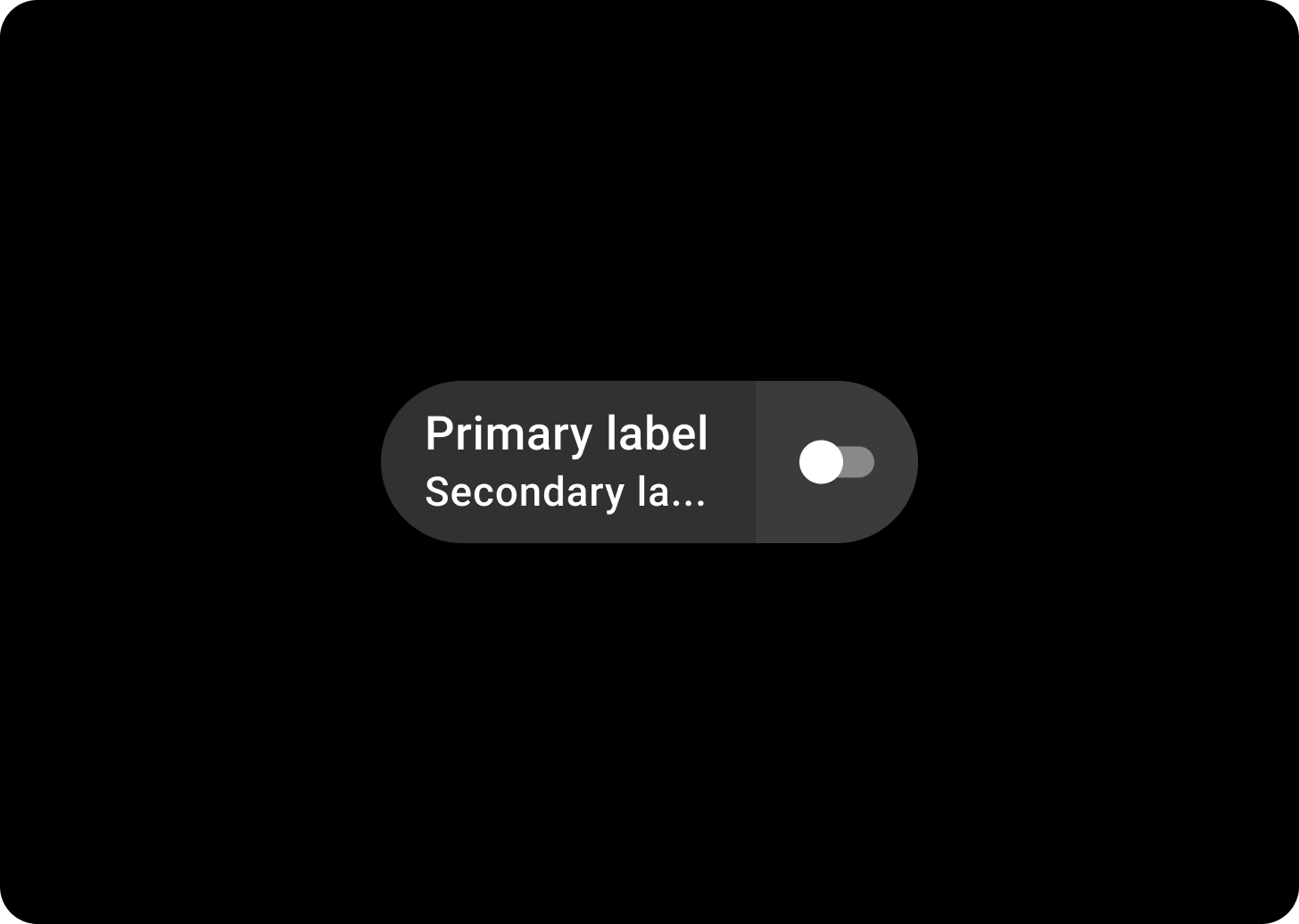 SplitToggleChip แตกต่างจาก ToggleChip ตรงที่มีพื้นที่ที่แตะได้ 2 พื้นที่ โดยพื้นที่หนึ่งคลิกได้และอีกพื้นที่หนึ่งมีปุ่มเปิด/ปิด