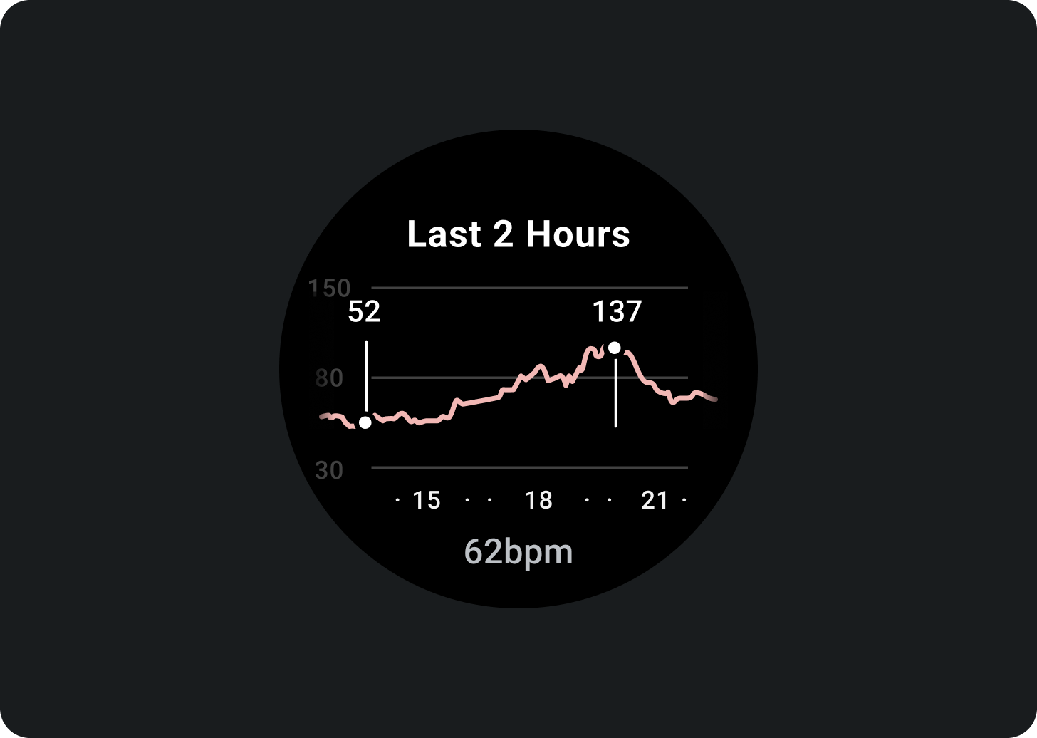 Pilih kecepatan update yang sesuai untuk kartu Anda, dengan mempertimbangkan dampaknya terhadap masa pakai baterai perangkat. Jika Anda menggunakan sumber data platform seperti detak jantung dan jumlah langkah, Wear OS akan mengontrol kecepatan pembaruan untuk Anda.