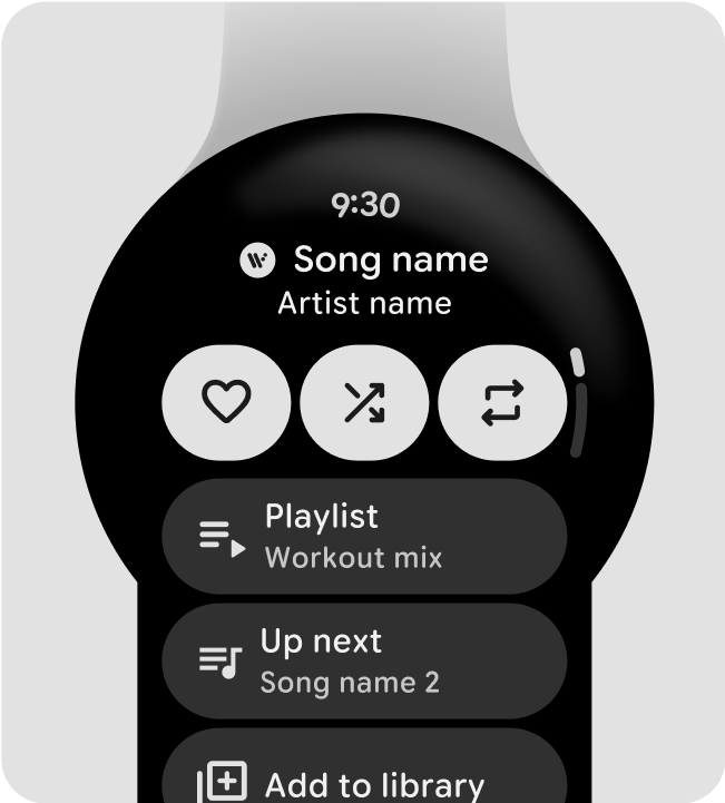 ระบบจะสร้างธีมสำหรับตัวควบคุมสื่อของแอปโดยการดึงสีเริ่มต้นจากอาร์ตเวิร์กของเอนทิตีสื่อปัจจุบัน อัลกอริทึมธีมแบบไดนามิก Material 3 Expressive จะสร้างชุดสีรอง ชุดสีระดับที่ 3 และชุดสีกลาง ธีมนี้ จะแสดงในหน้าจออื่นๆ ของแอป