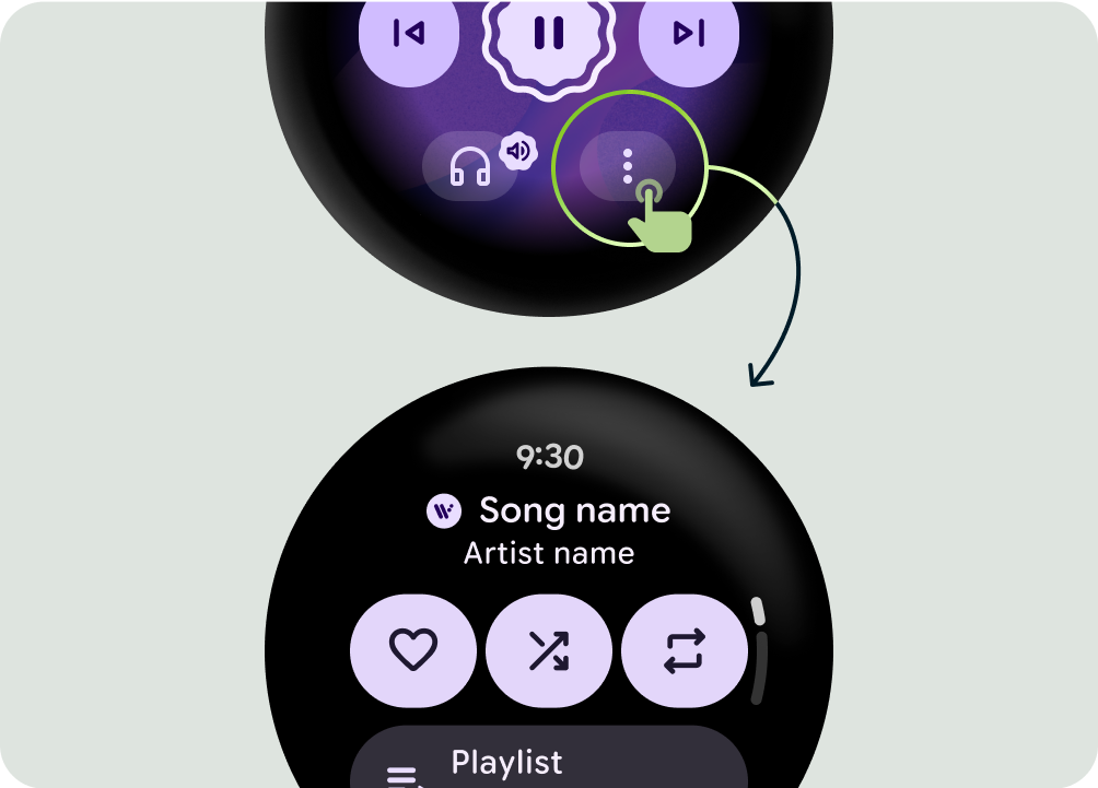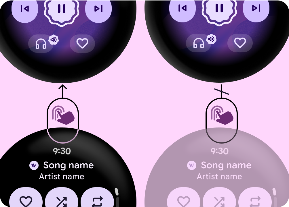 توضّح الأقسام التالية أنماط التصميم الشائعة لتجارب الوسائط على Wear OS.