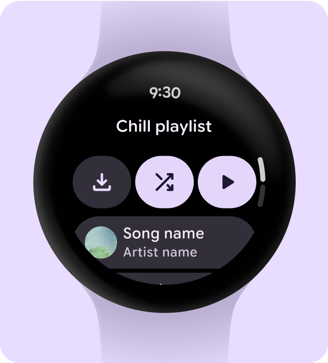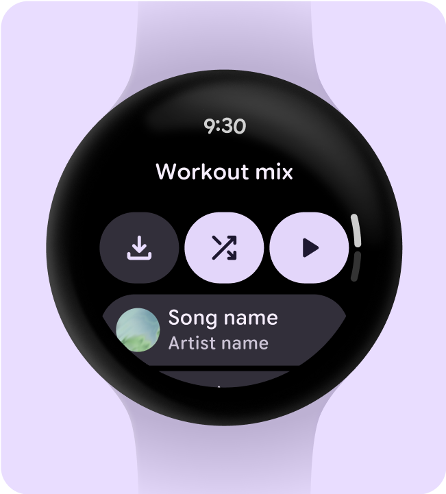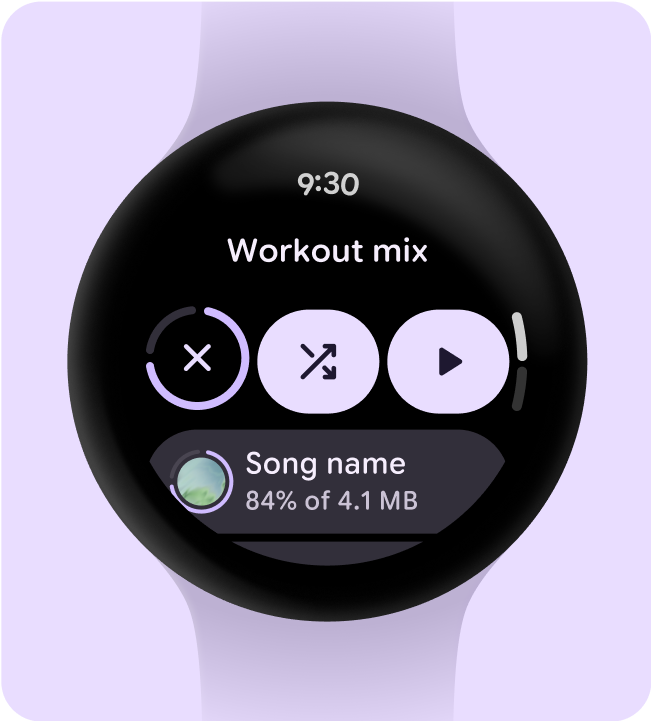 소스 기기가 시계인 경우 음악을 듣기 전에 사용자에게 오디오 출력을 선택하라는 메시지를 표시합니다. 사용자가 출력 기기를 선택하면 미디어를 재생하고 미디어 컨트롤에 헤드셋이나 이어폰과 같은 출력 기기 아이콘을 표시합니다.