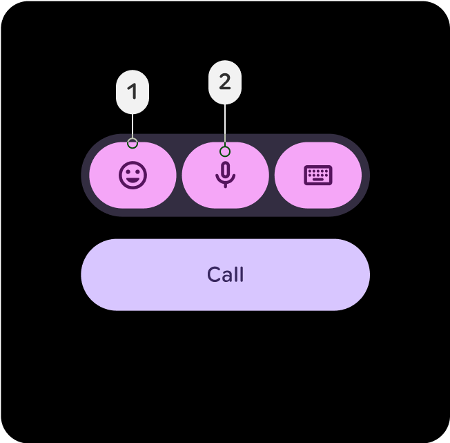 Wear Material 3 Expressive renk sisteminde, temel bileşenler için üç vurgu katmanı (birincil, ikincil, üçüncül) ve iki nötr yüzey katmanı kullanılır. Her rol, tutarlı kontrast içeren bir değer aralığı sunar. Bu sayede, herhangi bir temada birleşik bir deneyim için etkileyici ancak erişilebilir renk kombinasyonları oluşturulabilir.