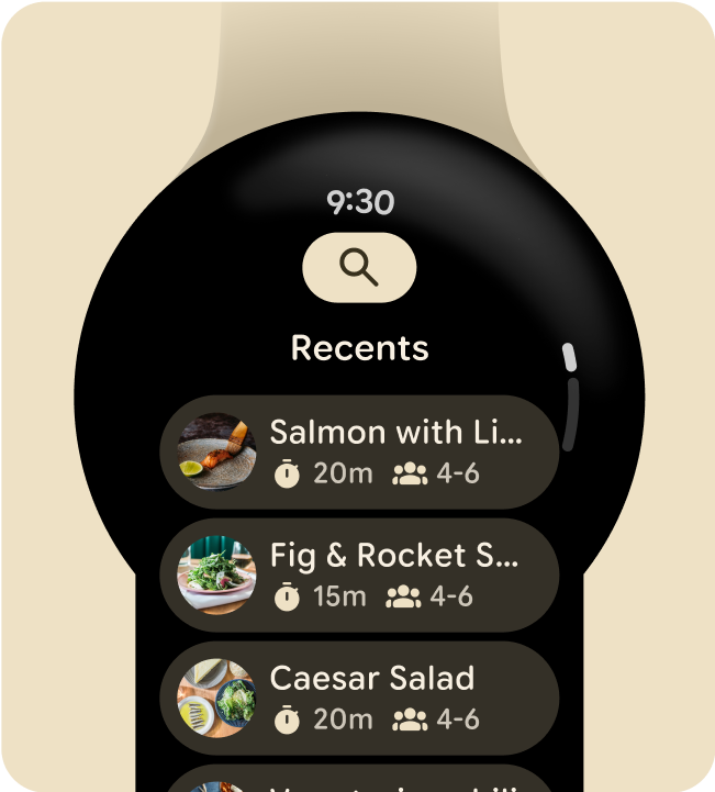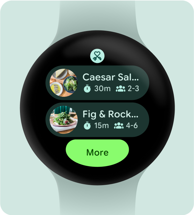 ম্যাটেরিয়াল 3 এক্সপ্রেসিভ যেভাবে রঙের ভূমিকা পালন করে তার অনুরূপ, Wear OS গতিশীল এবং অ্যাক্সেসযোগ্য রঙের অভিব্যক্তি সহ স্বতন্ত্র অভিজ্ঞতায় রঙ প্রয়োগ করে। Wear OS শুধুমাত্র অন্ধকার থিম ব্যবহার করে কারণ পরিধানযোগ্য ইন্টারফেসটি একটি কালো পটভূমিতে তৈরি করা হয়েছে। টাচ ডিভাইসে চালিত একটি প্ল্যাটফর্ম হওয়ার কারণে, Wear OS-এর আরও সীমিত রঙের প্যালেট রয়েছে কারণ এটিতে অনেকগুলি হোভার এবং ফোকাস অবস্থার প্রয়োজন হয় না। আপনার ব্র্যান্ডের চারপাশে একটি কাস্টম থিম তৈরি করতে Wear OS-নির্দিষ্ট রঙের থিম বিল্ডিং সরঞ্জামগুলি ব্যবহার করুন এবং সম্পূর্ণ রেফারেন্স প্যালেট এবং নির্ধারিত রঙের ভূমিকা তৈরি করুন যা উপাদান ডিজাইন টোকেন সমর্থন করে এবং সিস্টেম UI উপাদানগুলির সাথে নির্বিঘ্নে কাজ করার জন্য নির্মিত।