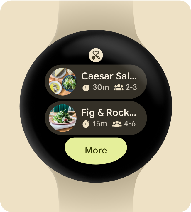 Comme Material 3 Expressive traite les rôles de couleur, Wear OS applique la couleur aux expériences individualisées avec une expression de couleur dynamique et accessible. Wear OS n'utilise que le thème sombre, car l'interface du wearable est conçue sur un arrière-plan noir. Étant donné qu'il s'agit d'une plate-forme exécutée sur des appareils tactiles, Wear OS dispose également d'une palette de couleurs plus limitée, car il ne nécessite pas autant d'états de survol et de mise au point. Utilisez les outils de création de thèmes de couleurs spécifiques à Wear OS pour créer un thème personnalisé autour de votre marque, et générer les palettes de référence complètes et les rôles de couleur attribués qui prennent en charge les jetons Material Design et sont conçus pour fonctionner de manière transparente avec les composants d'UI du système.