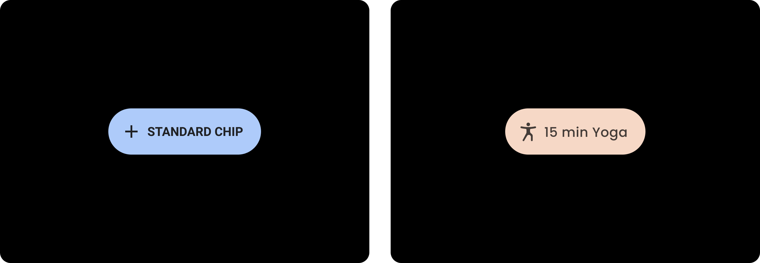 On attribue à un chip contenu des valeurs pour une couleur, une forme et une famille de types spécifiques. Modifiez les valeurs par défaut pour les adapter au style de votre application.