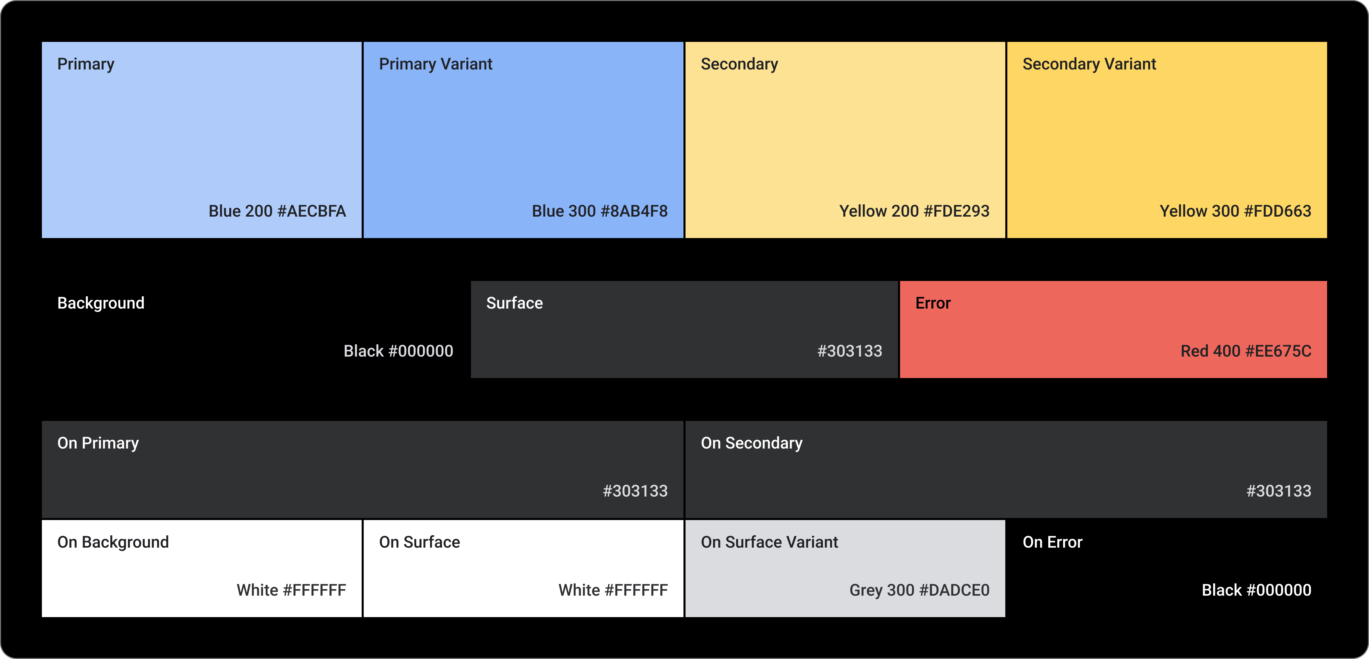 Le système de couleurs permet de définir des couleurs personnalisées pour les composants, le texte, les icônes et les surfaces. Définissez les couleurs de votre thème pour les 13 catégories suivantes :