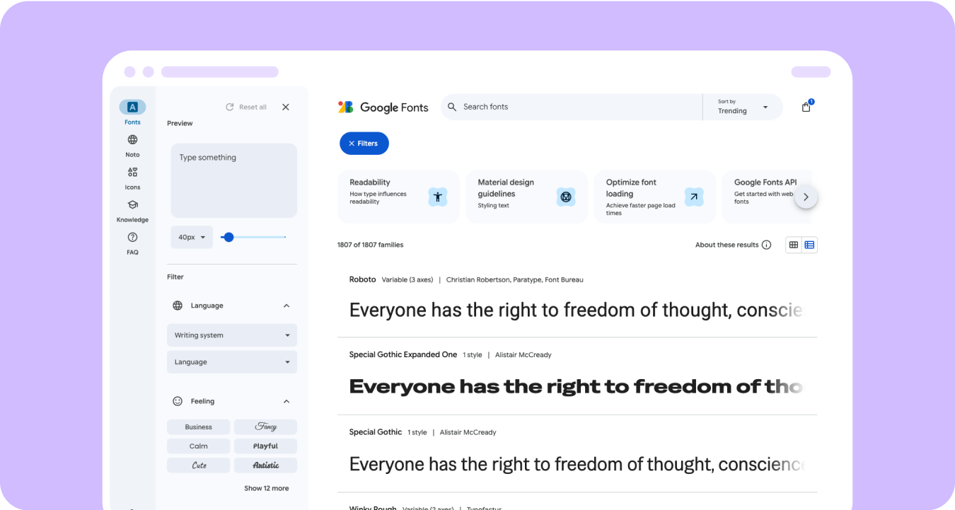 Resource: Google Fonts library