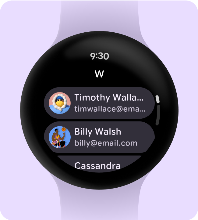 Hierarchie wird durch Unterschiede in Schriftstärke, Größe, Zeilenhöhe und Buchstabenabstand vermittelt. Die aktualisierte Typografie-Skala unterteilt Stile in sechs Rollen, deren Namen ihren Zweck beschreiben: „display“ (Überschrift), „title“ (Titel), „label“ (Label), „body“ (Textkörper), „numeral“ (Ziffer) und „arc“ (Bogen). Die neuen Rollen sind unabhängig von der Bildschirmgröße und lassen sich daher einfacher für verschiedene Anwendungsfälle einsetzen.