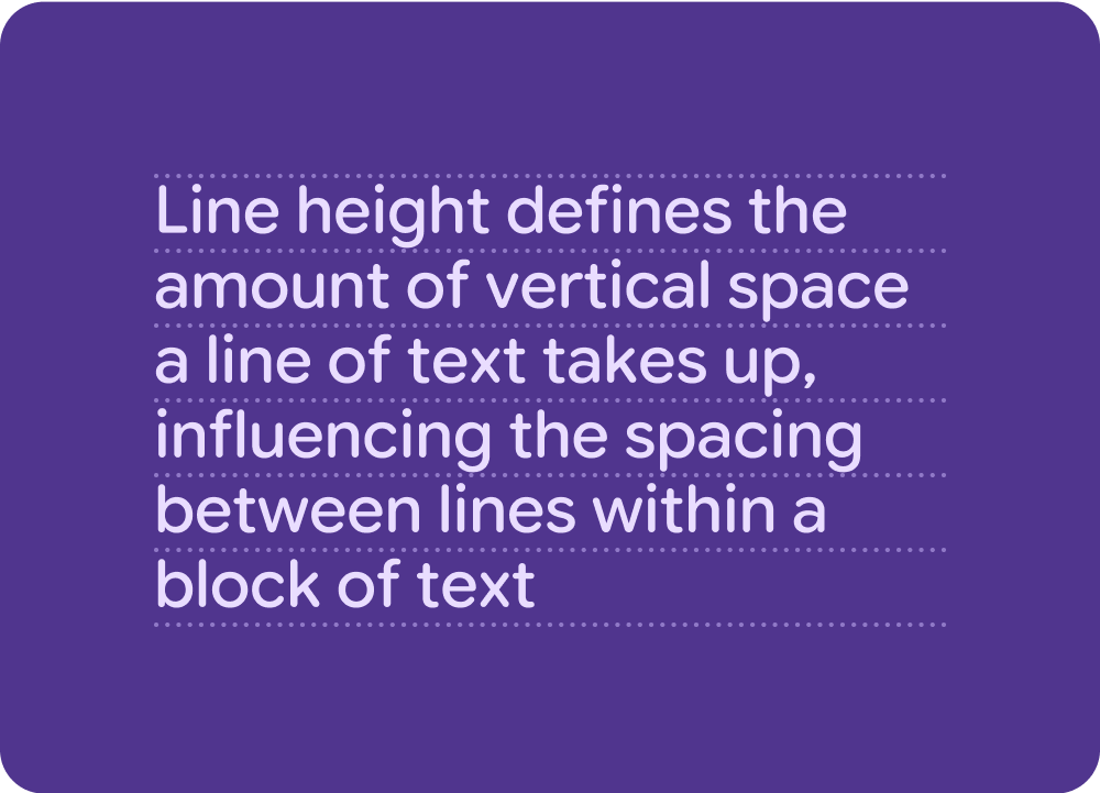 A composição vertical depende de padding, caixas delimitadoras e linhas de base para garantir a legibilidade do texto em qualquer tamanho. Considere as considerações de engenharia e as convenções da sua plataforma ao tomar decisões sobre tipografia, redimensionamento de texto, densidade e uso de texto em layouts adaptáveis.