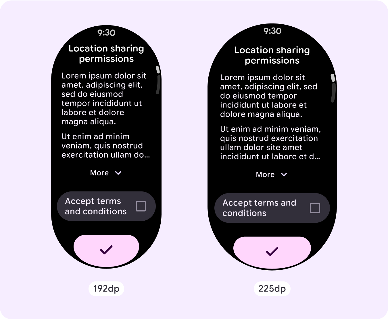 - استفاده از نقطه شکست در 225dp را در نظر بگیرید تا محتوای اضافی را معرفی کنید یا محتوای موجود را در اندازههای صفحه بزرگتر قابل مشاهدهتر کنید.