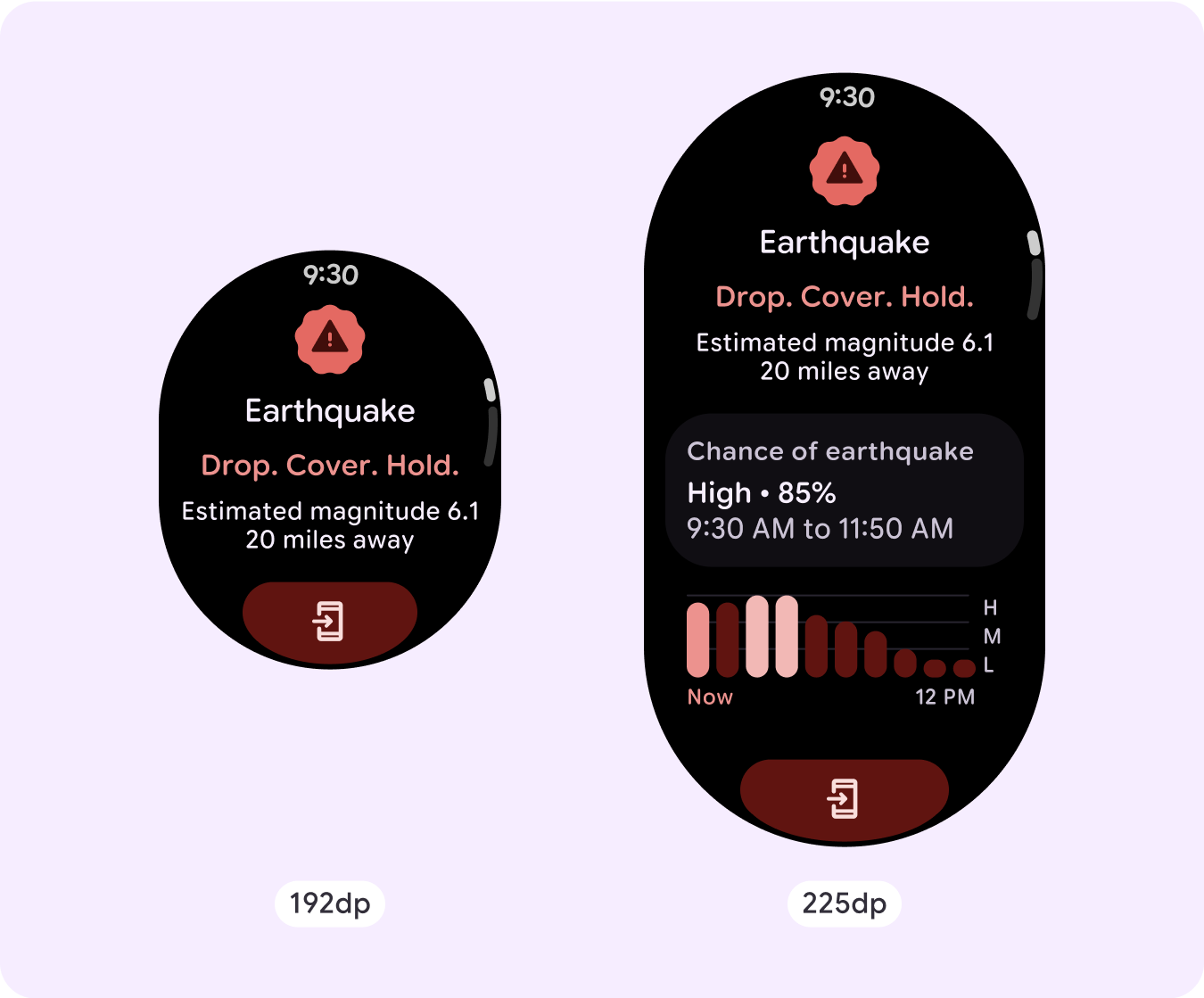 - Рассмотрите возможность применения контрольной точки на уровне 225dp, чтобы представить дополнительный контент или сделать существующий контент более удобным для просмотра на экранах большего размера.