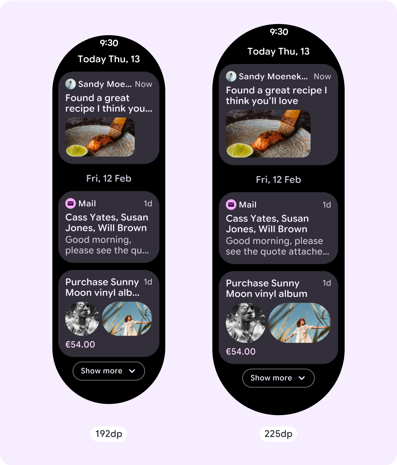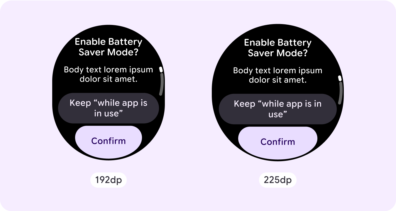 - ลองใช้เบรกพอยต์ที่ 225dp เพื่อแสดงเนื้อหาเพิ่มเติมหรือ ทำให้เนื้อหาที่มีอยู่ดูง่ายขึ้นเมื่ออยู่บนหน้าจอขนาดใหญ่
