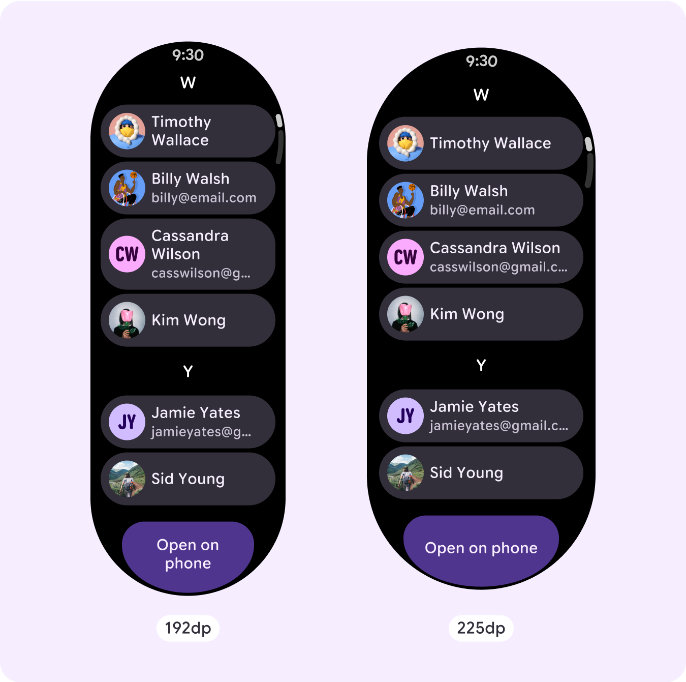 - 建議在 225 dp 處套用中斷點,以便在大螢幕上顯示額外內容,或讓現有內容更易於瀏覽。
