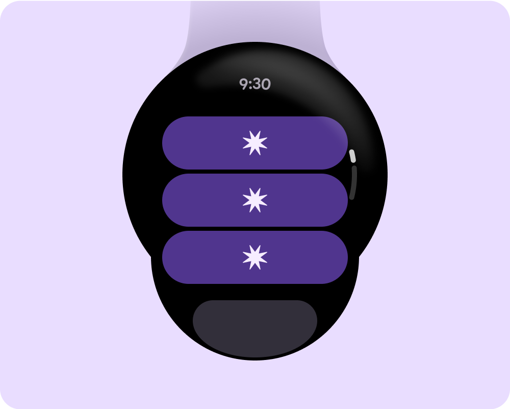 เราขอแนะนำให้ใช้ปุ่มที่แนบไปกับขอบของรายการท้ายๆ เนื่องจากใช้พื้นที่อย่างจำกัดและเสริมให้เข้ากับหน้าจอกลม