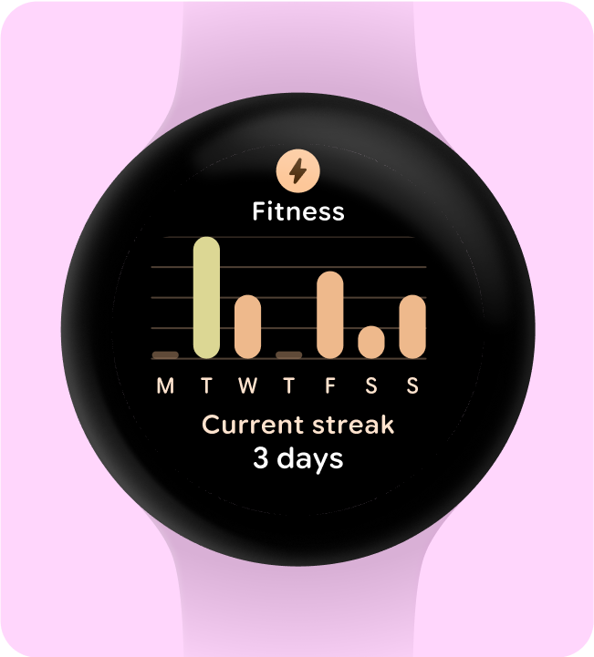一目瞭然是 Wear OS 設計的關鍵。由於螢幕時間有限 (約 7 秒),請以清晰的格式優先顯示重要資訊,讓觀眾一目瞭然。