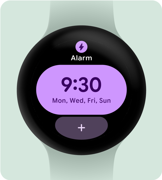 當使用者捲動資訊方塊輪轉介面時,Wear OS 可能會自動顯示應用程式圖示。您不需要在資訊方塊設計中放入應用程式圖示。