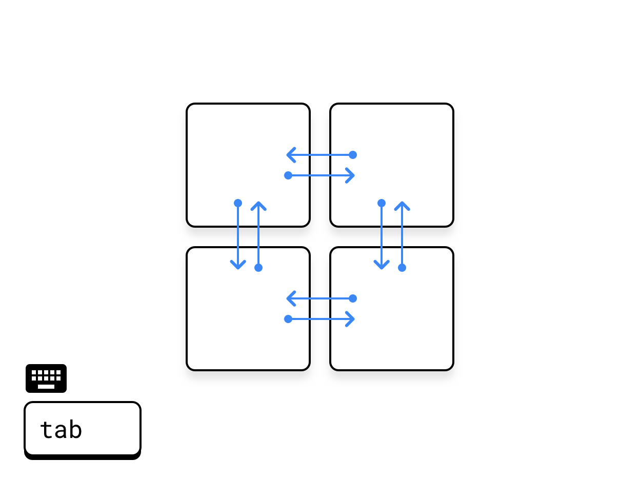 Demikian pula, tangani semua elemen UI penting menggunakan navigasi tab. Hal ini sangat penting untuk aksesibilitas. Untuk memenuhi standar aksesibilitas, semua permukaan UI harus memiliki status fokus yang jelas dan sesuai dengan aksesibilitas, seperti yang ditunjukkan pada gambar berikut: