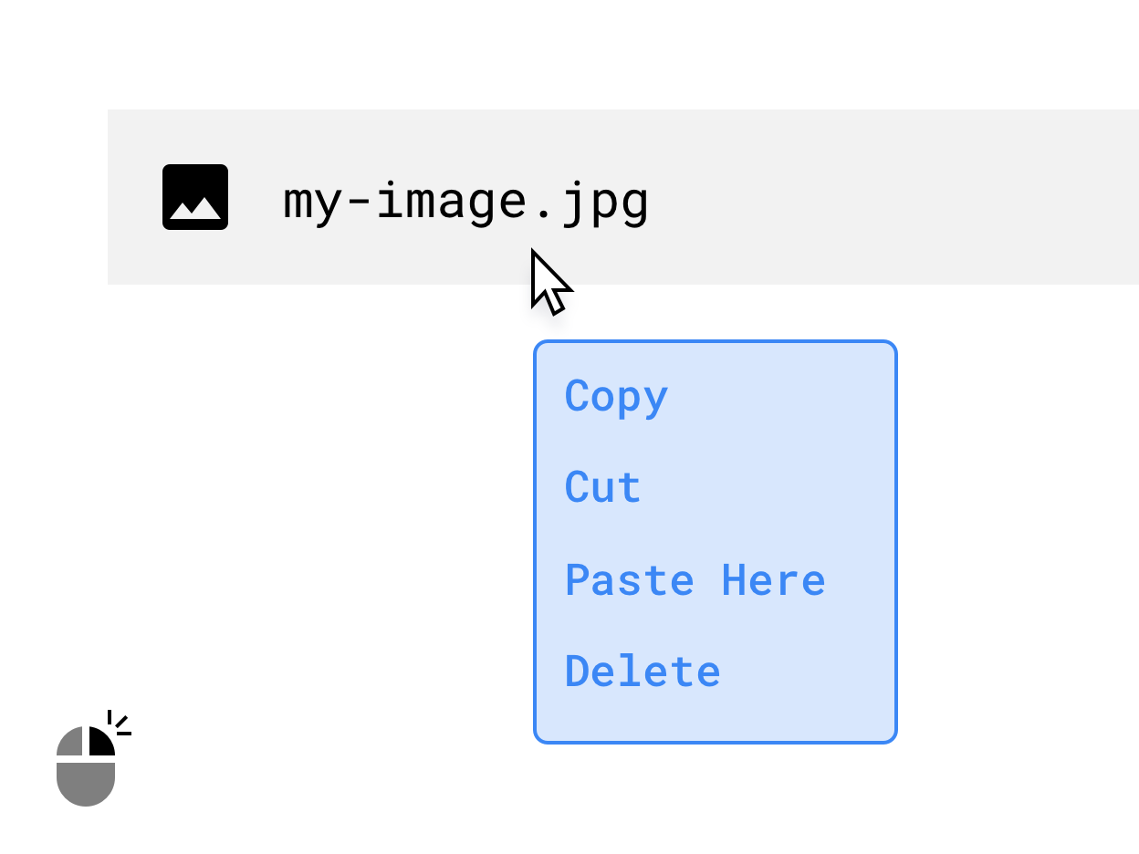 Android には、アプリの機能を把握、利用しやすくする方法の一つとして、 コンテキスト メニューがあります。これは、マウスやトラックパッドの第 2 ボタンをクリックするか、タッチスクリーンをタッチして長押しすることで表示されます。