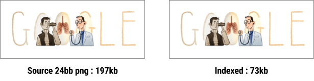 Representar la imagen como una imagen con paleta ayuda mucho a mejorar en gran medida el tamaño del archivo, por lo que vale la pena investigar si se puede convertir la mayoría de las imágenes.