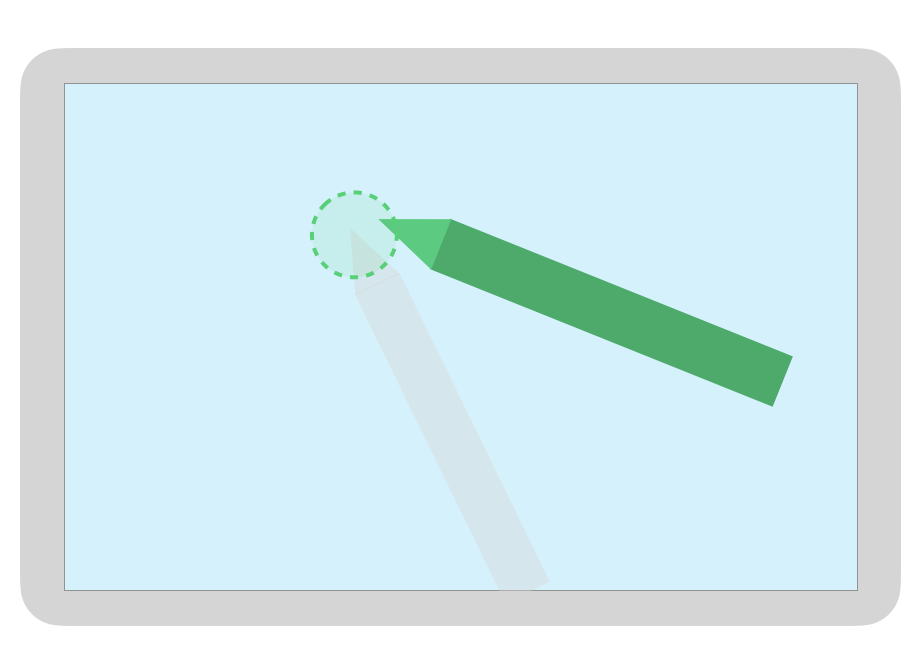 予測ライブラリでは、画面上のタッチペンのレンダリングが