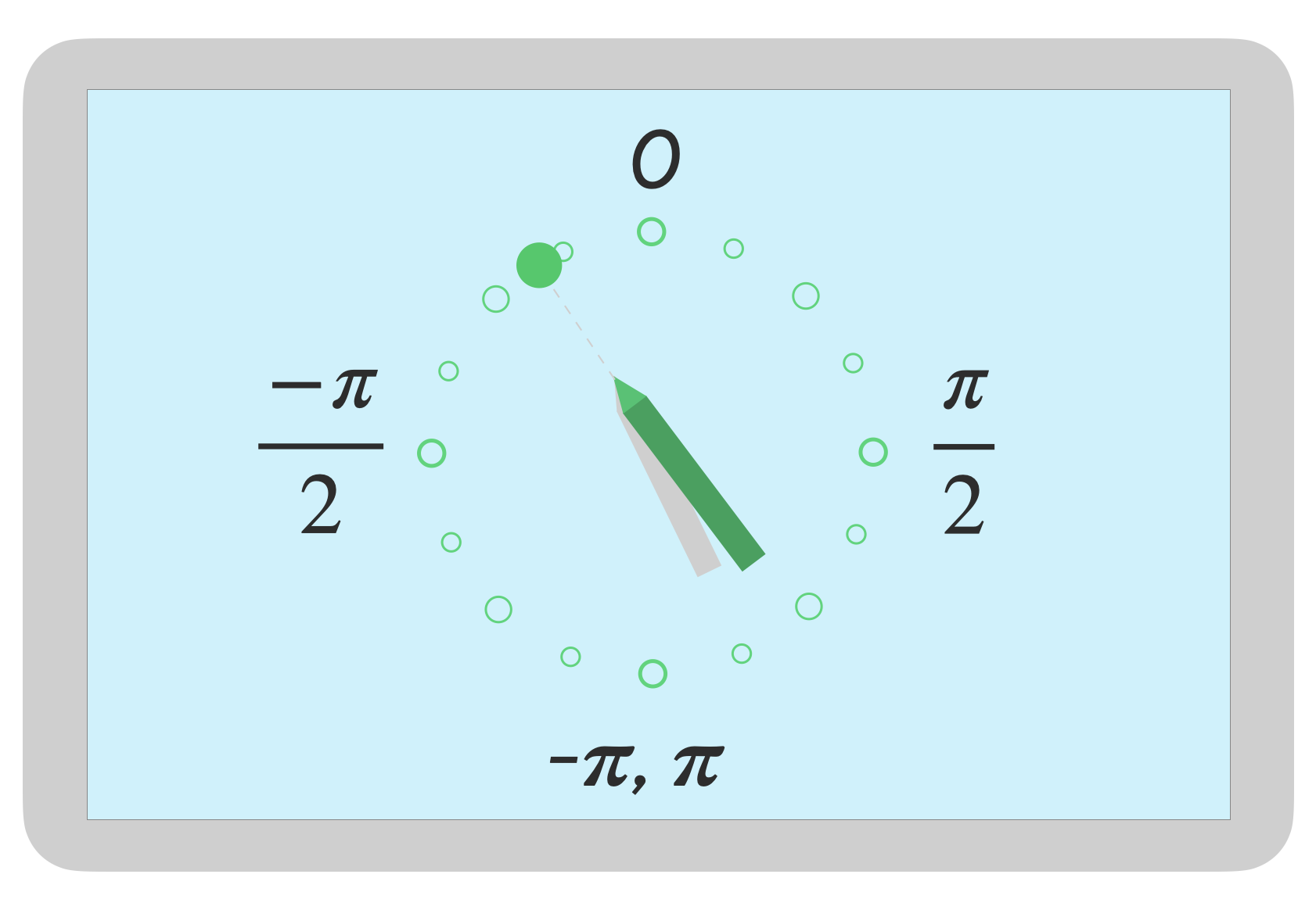 Для стилуса ориентация возвращается в виде значения в радианах от 0 до пи (𝛑) по часовой стрелке или от 0 до -пи против часовой стрелки.