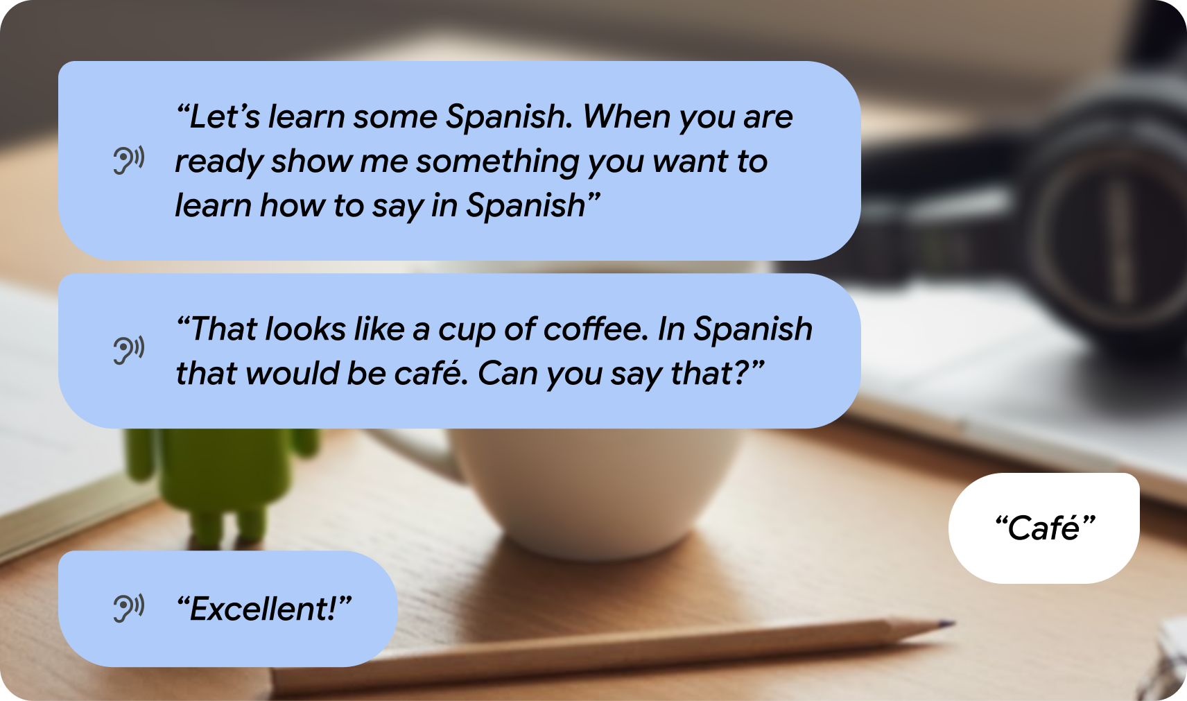 AI 안경을 위한 앱 환경에 AI와 상황 인식 통합 Gemini 모델과의 음성 대 음성 상호작용을 지원하는 Gemini Live API로 대화형 환경을 빌드하세요.