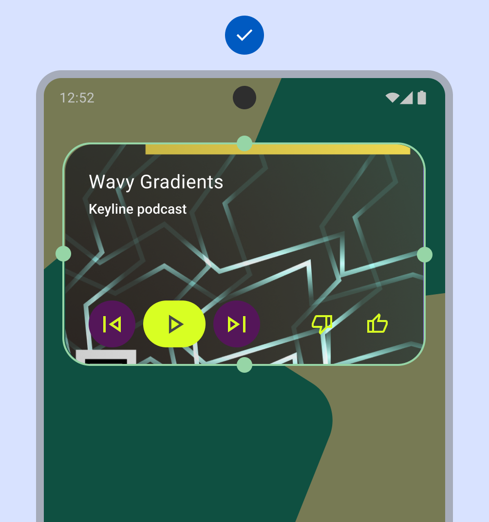 Estos widgets admiten personalizaciones premium de la pantalla principal y se recomendarán a los usuarios y se mostrarán a los desarrolladores como prácticas recomendadas. Los widgets diferenciados ofrecen experiencias de héroe y Android los aprovecha para inspirar y revitalizar el ecosistema. Cumplen con todos los criterios de diseño, color, descubrimiento y contenido diferenciados.