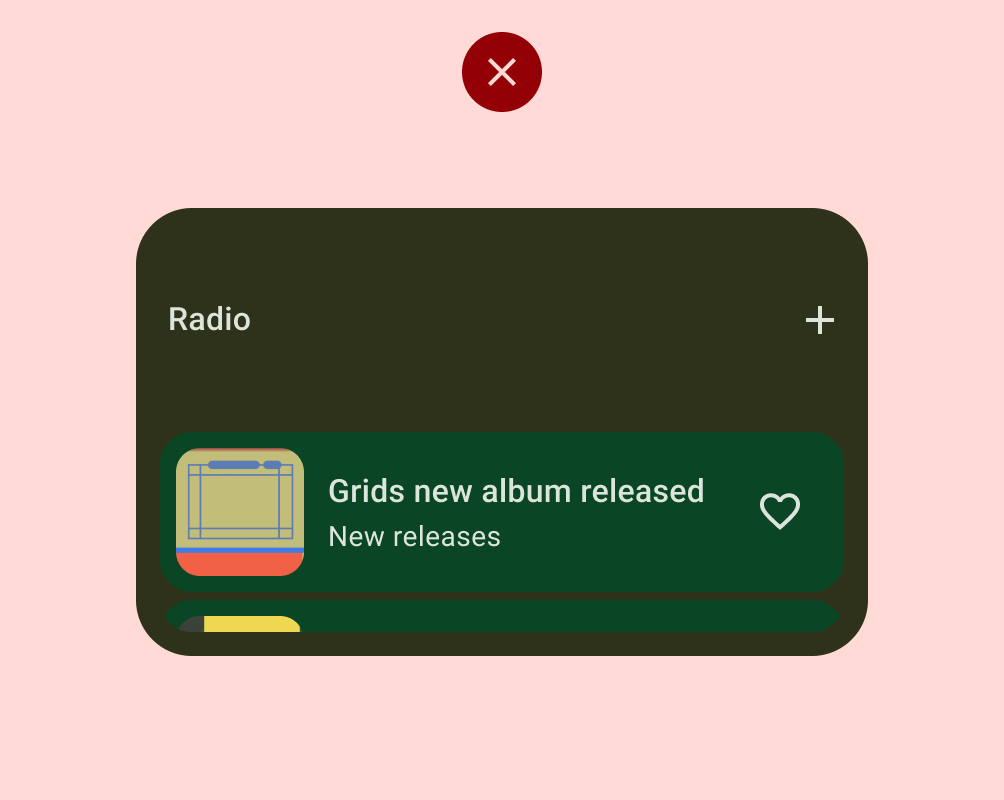 উইজেট গ্রিডের অন্তত 2টি বিপরীত প্রান্ত স্পর্শ করে না। অন্য কথায়, উইজেটগুলির সমস্ত আয়তক্ষেত্রাকার হওয়ার দরকার নেই, তাদের কাস্টম আকার থাকতে পারে, যতক্ষণ না আকারের প্রান্তগুলি গ্রিডের কমপক্ষে 2টি প্রান্তকে স্পর্শ করে।
