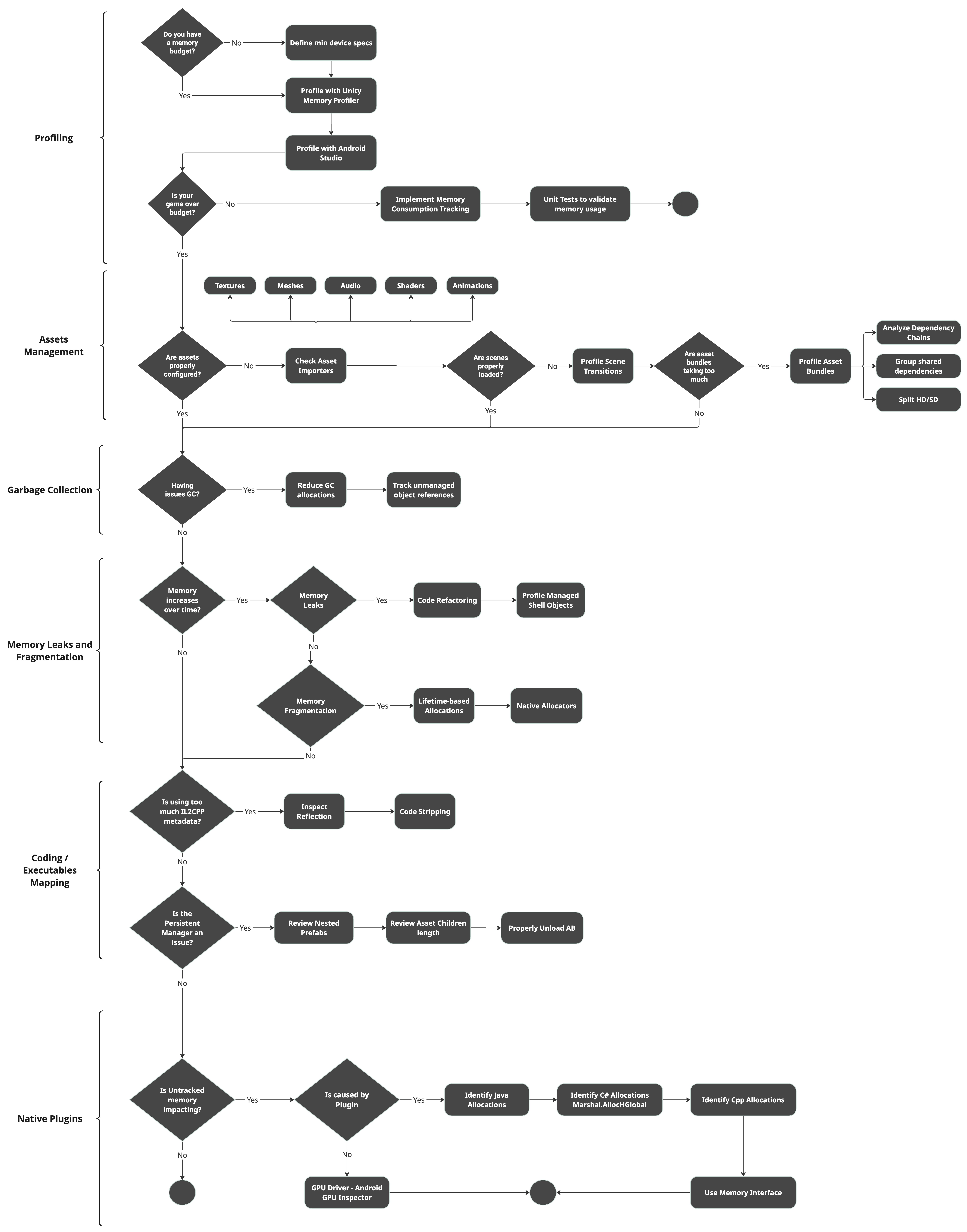 O uso de memória em jogos Android pode variar muito dependendo do tipo de jogo, do número e dos tipos de recursos e das estratégias de otimização de memória. No entanto, os colaboradores comuns para o uso da memória geralmente incluem texturas, malhas, arquivos de áudio, shaders, animações e scripts.
