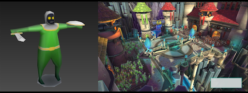 图 4. 这是两个不同用例的三角形数量的对比图。左侧的 CircuitVR 机器人有 11,000 个三角形。右侧的 Armies 士兵有 360 个三角形。
