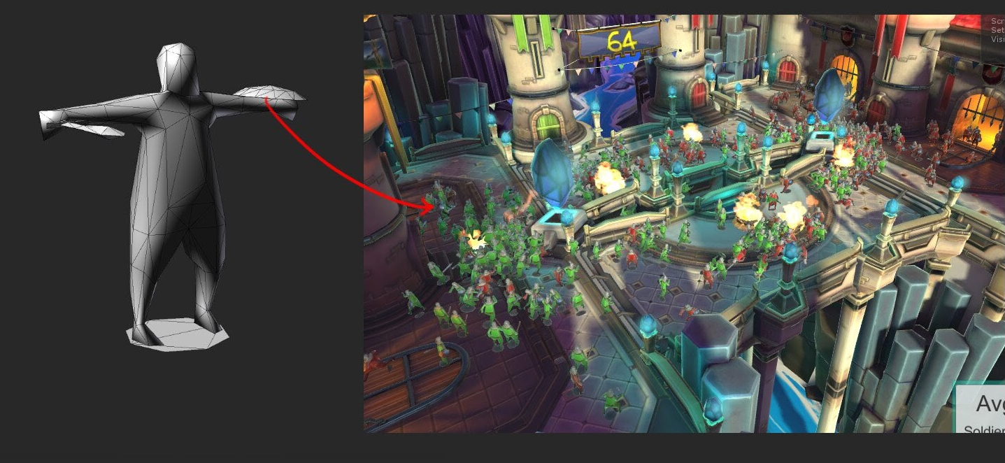 图 6. Armies 技术演示中使用较少三角形的士兵视图。