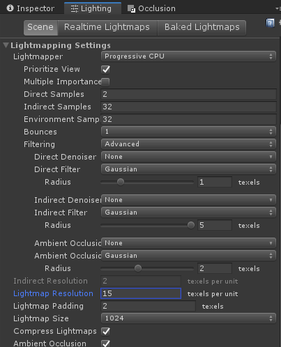 Gambar 6. Lightmapper Settings memungkinkan Anda mengubah metode perekaman untuk Scene.