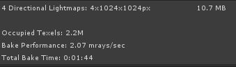 প্রয়োজনীয় লাইটম্যাপ ডেটার পরিমাণ কমাতে, লাইটম্যাপিং সেটিংসে বেকের প্রতি ইউনিট টেক্সেলের সংখ্যা সামঞ্জস্য করুন।