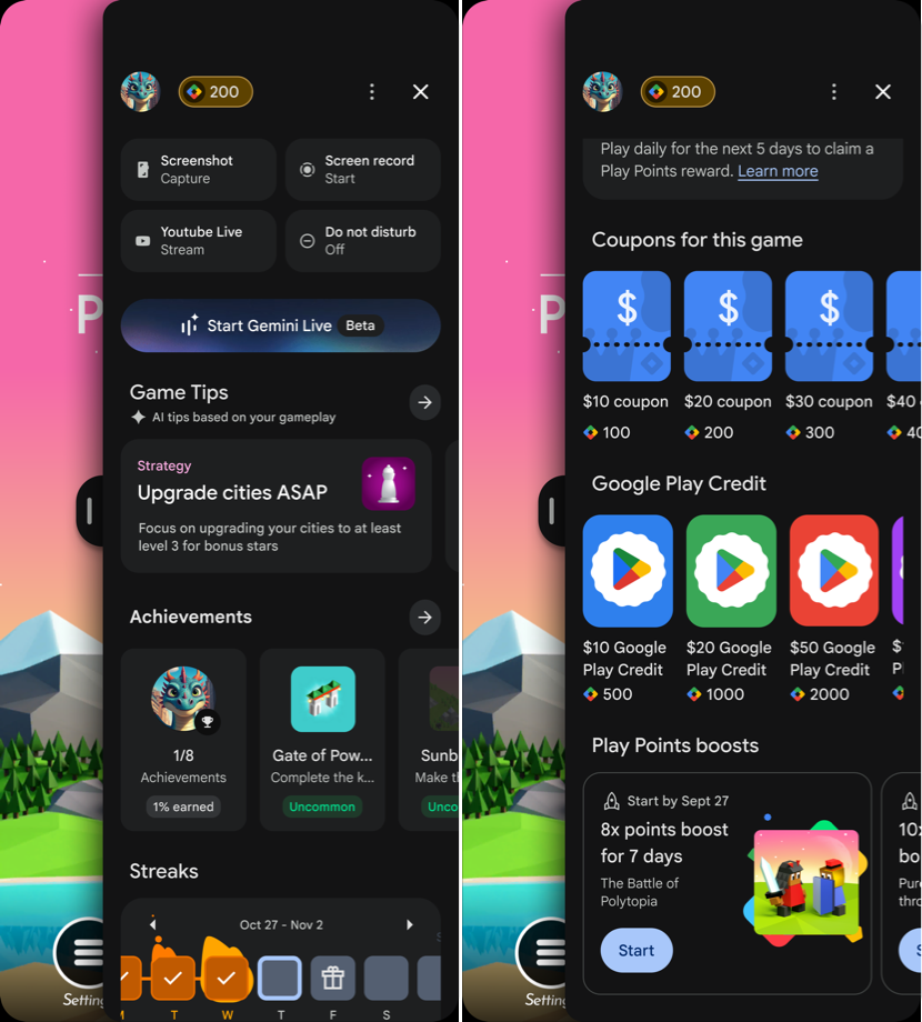 - Giữ chân người dùng bằng Gemini Live và các mẹo, nhờ đó bạn không cần rời khỏi trò chơi để được trợ giúp hoặc tư vấn.