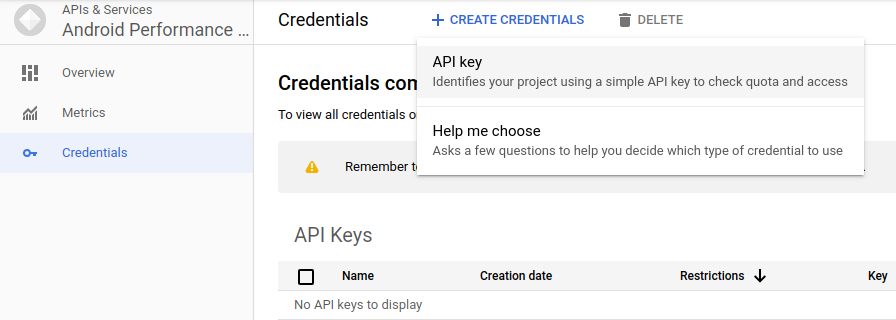 - เลือก Android Performance Parameters API จากรายการ
