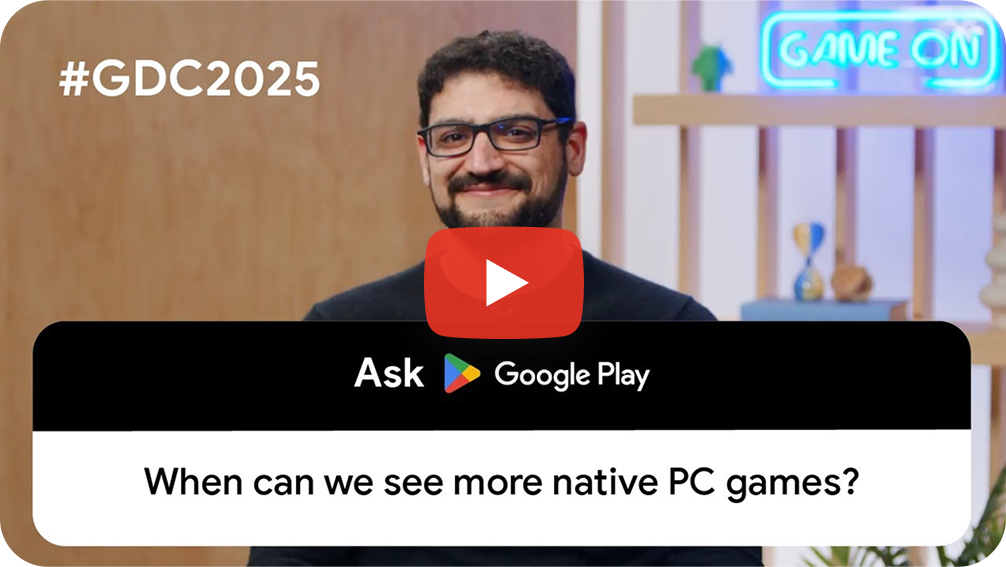 PC 版 Google Play Games が今年、プラットフォームの大幅なアップグレード、サポートの拡大、一般提供を通じて、デベロッパーがデバイス間のリーチを拡大できるよう支援している方法について説明します。