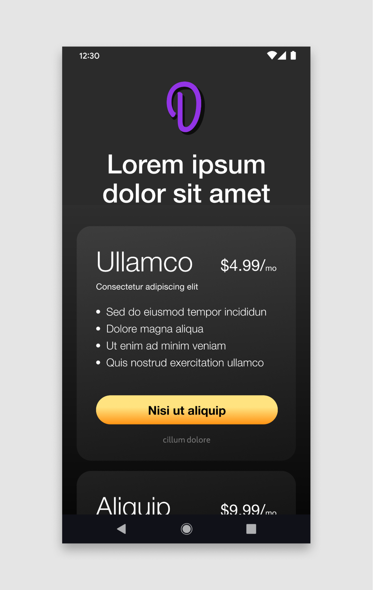 - Se l'utente sceglie di utilizzare il sistema di fatturazione di Google Play, il flusso di fatturazione continua a utilizzare l'interfaccia standard di fatturazione di Google Play.