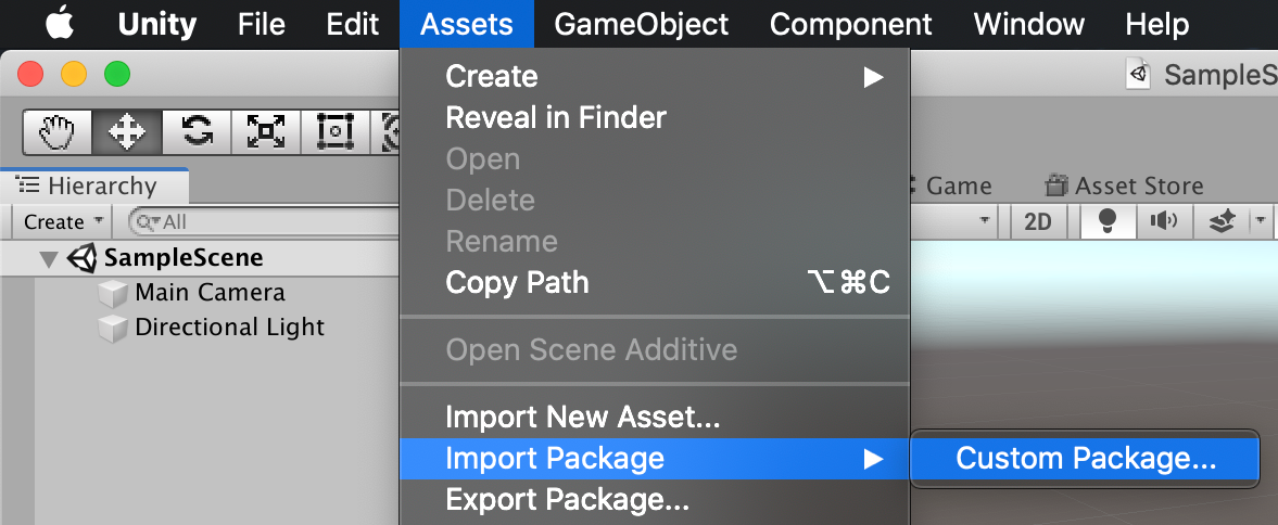 .unitypackagefile and select it.In the Import Unity Package dialog, leave all assets selected and click Import.