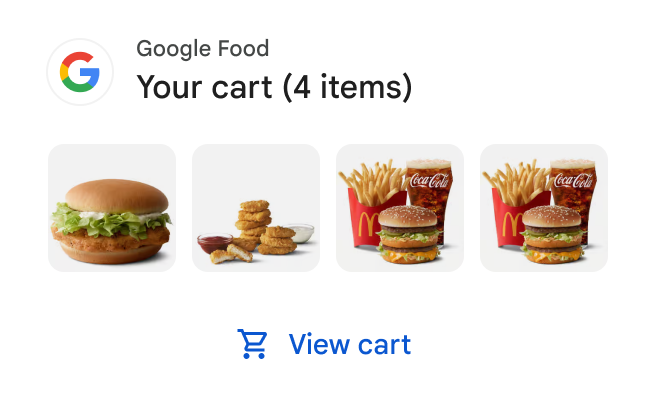 <action android:name="com.google.android.engage.action.food.PUBLISH_FOOD_SHOPPING_CART" />