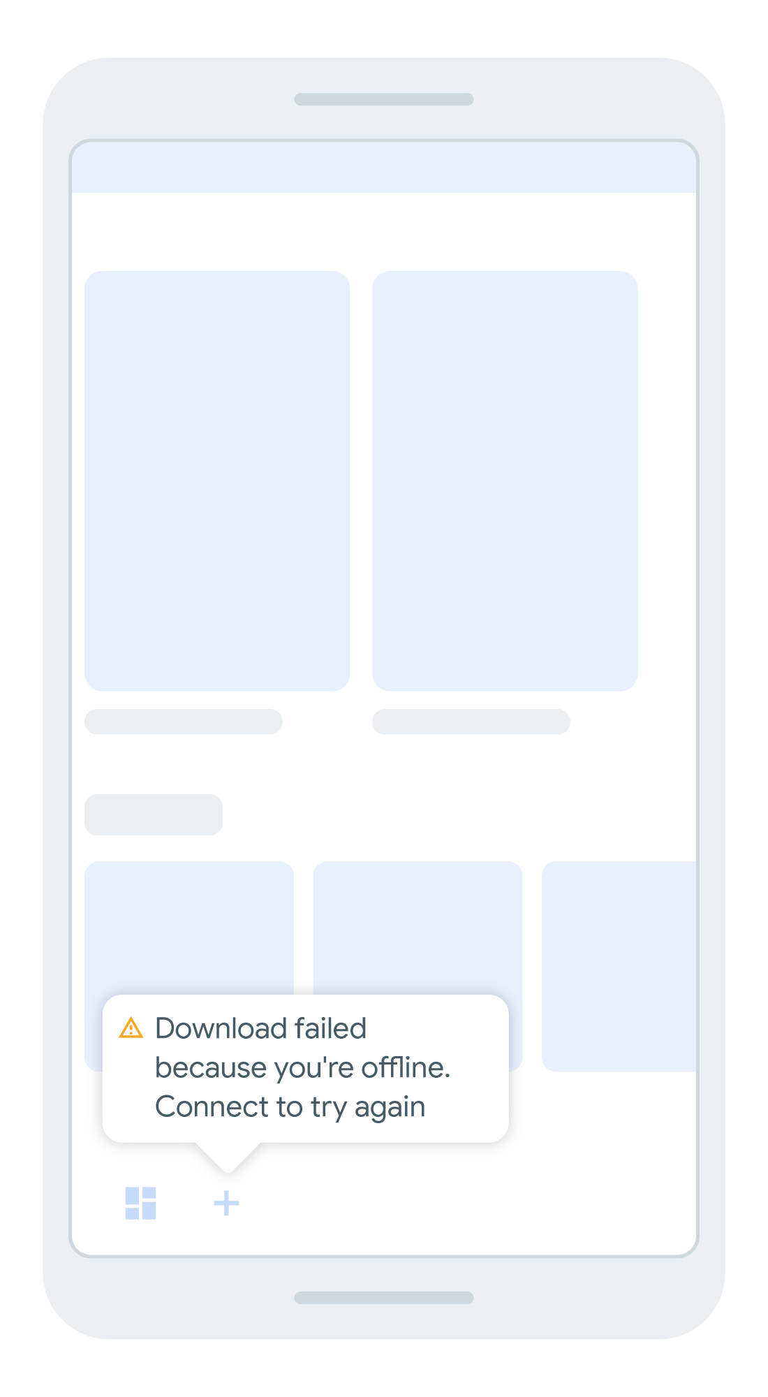 في حالة فشل التنزيل أو التقدم بصورة أبطأ مما كان متوقعًا، يجب إبلاغ المستخدم بوضوح وشفافية بما يجري وماذا يفعل، إن وجد،