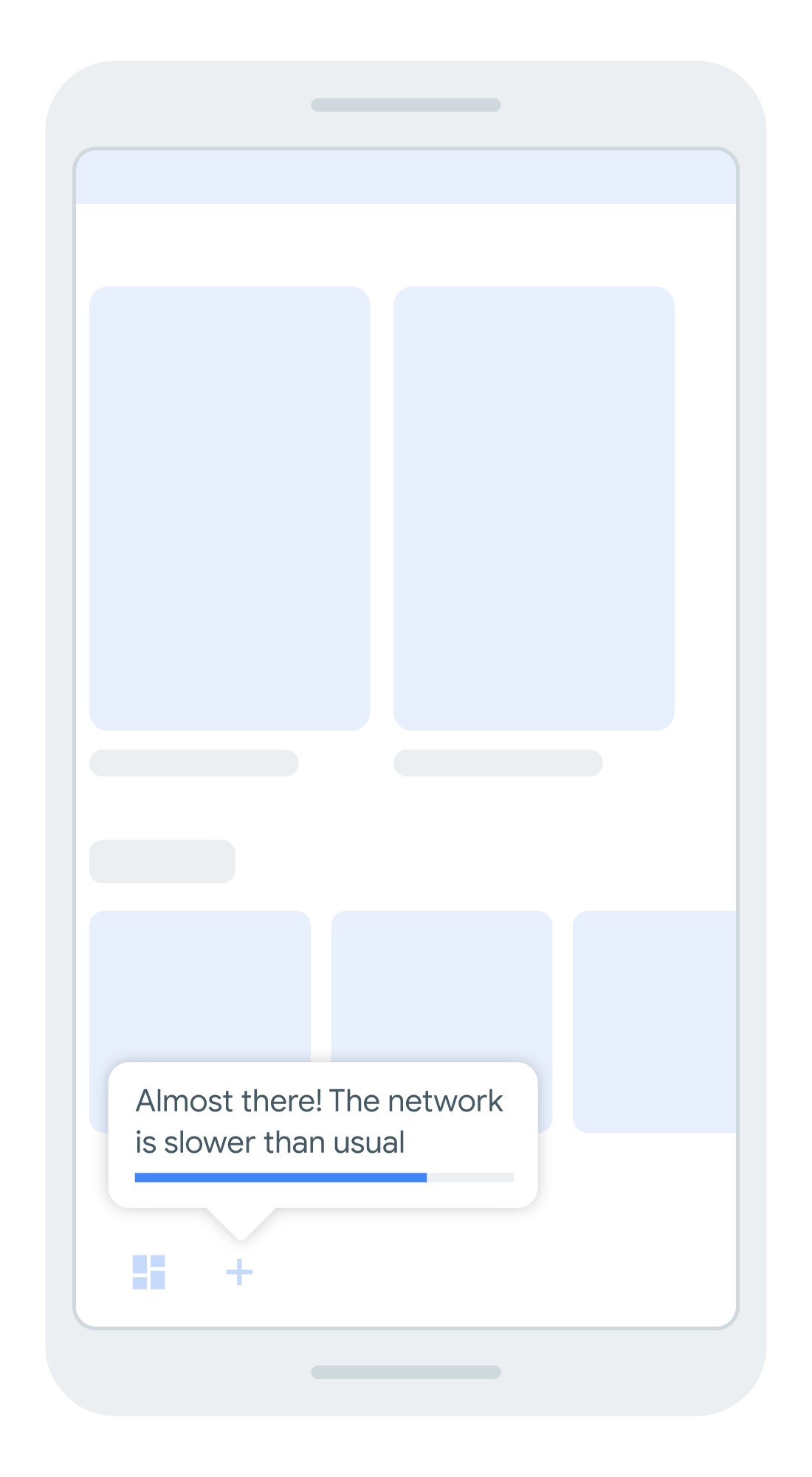 الشكل 3. اشرح للمستخدم لماذا يستغرق تنزيل إحدى الميزات وقتًا أطول من المتوقَّع.