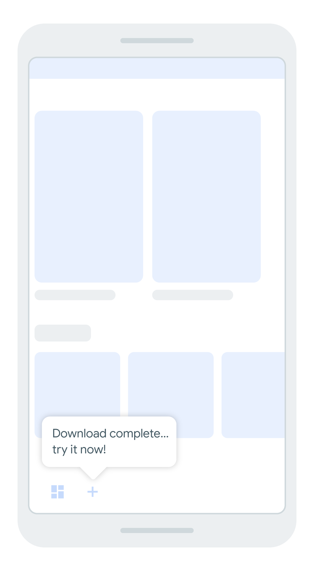 - بالنسبة إلى الوحدات الأصغر حجمًا (حوالي 10 ميغابايت أو أقل) التي يمكن تثبيتها بسرعة كبيرة، يمكنك استخدام مؤشرات مثل إطارات دوارة أو رسالة مختصرة مفادها "تنزيل المحتوى".