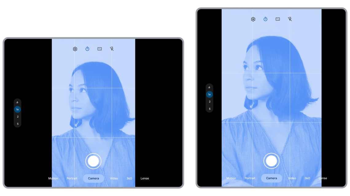 Display#getRotation()returnsSurface.ROTATION_0. If apps assumeROTATION_0is portrait, app layouts and camera preview can be mismatched to the device display. - Landscape foldables: Some foldable devices, such as Pixel Fold, are in portrait orientation when folded, but landscape orientation when unfolded. If apps assume the unfolded orientation is portrait, flickering loops or layout issues are likely.
