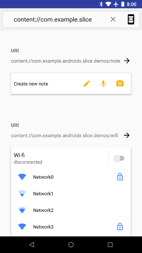 • Tap the URI of the Slice to see a page containing only that Slice. This has the same effect as launching Slice Viewer with a Slice URI.