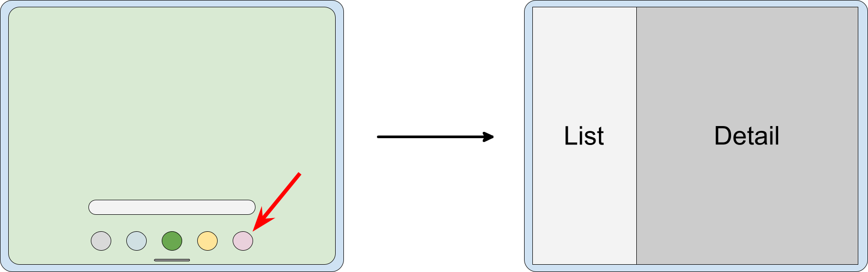 Un esempio comune è la suddivisione elenco-dettagli. Per garantire una presentazione di alta qualità, il sistema avvia l'attività di elenco, quindi l'applicazione avvia immediatamente l'attività di dettaglio. Il sistema di transizione attende che vengano disegnate entrambe le attività, quindi le visualizza insieme. Per l'utente, le due attività vengono avviate come una sola.