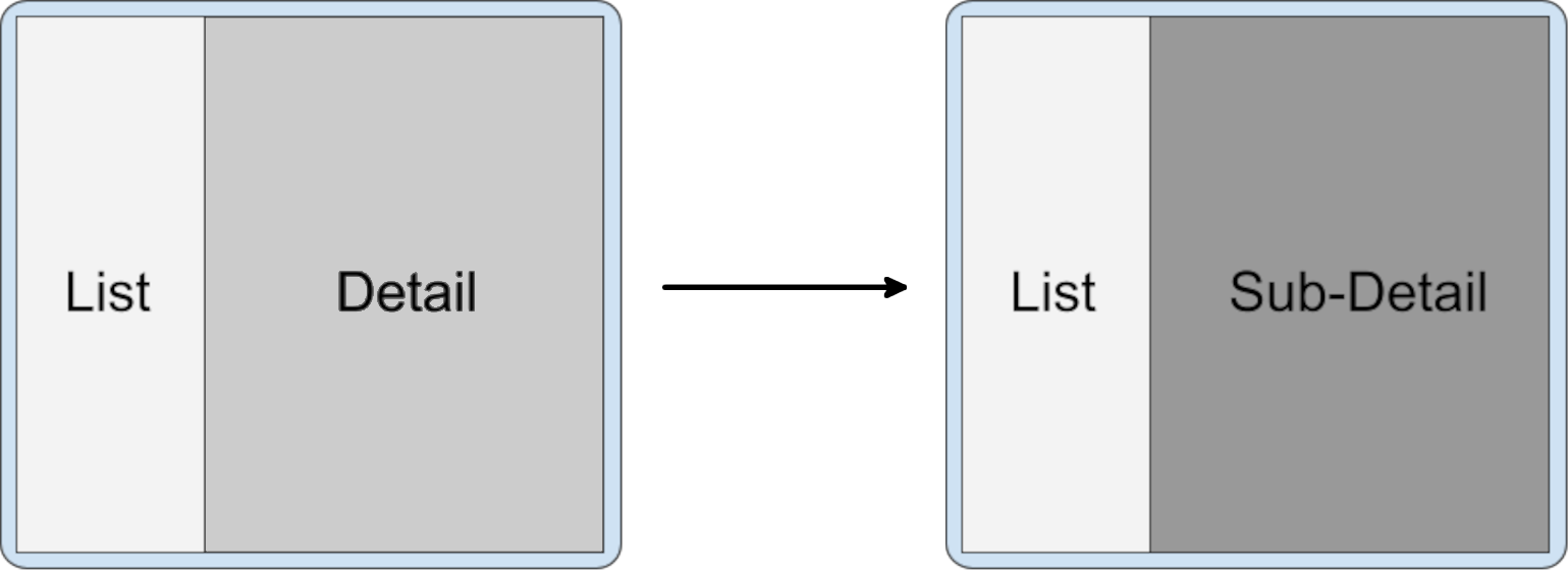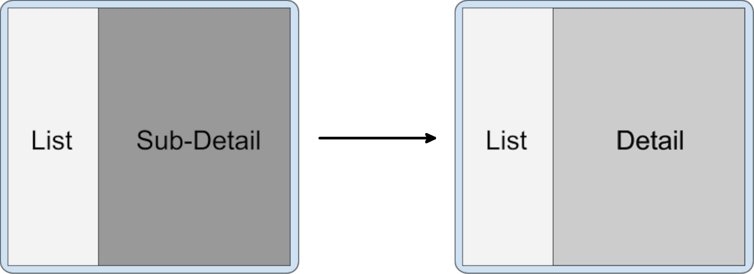 Le attività vengono impilate nel contenitore secondario man mano che vengono avviate e il contenitore secondario viene impilato sopra il contenitore principale sugli schermi piccoli, quindi l'impilamento delle attività e la navigazione indietro sono coerenti con l'ordine delle attività già integrate nell'app.