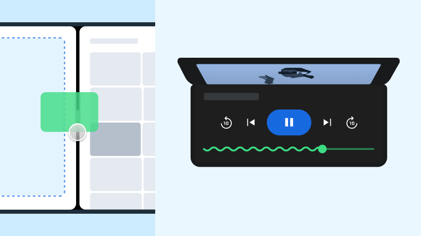 Aplikasi yang terdiferensiasi di perangkat layar besar membuat multitasking dan tarik lalu lepas menjadi mudah dan sederhana. Aplikasi yang terdiferensiasi mendukung fitur unik perangkat foldable, seperti postur mode di atas meja, untuk pengalaman pengguna yang tidak dapat ditandingi jenis perangkat lain.